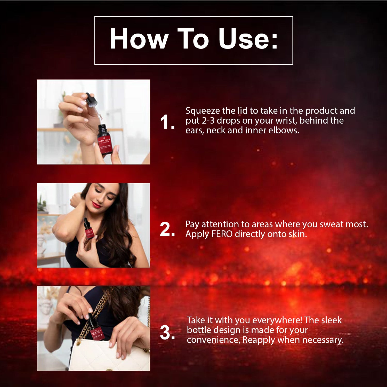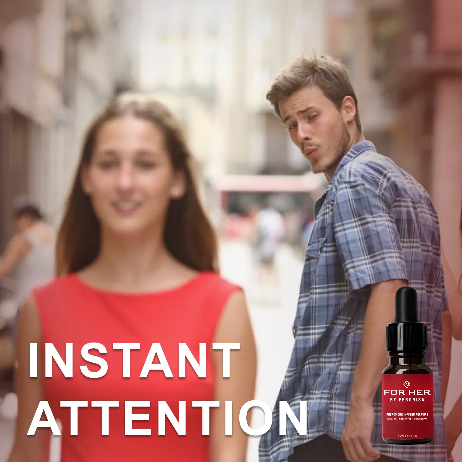 FERONISA Pheromone Perfume For Her blends Compulins and Androsterone to awaken raw attraction at a primal level. Compulins ignite instinctive male arousal when you’re close. Androsterone amplifies your natural scent, making it impossible to ignore. Powered by ion-binding technology, the fragrance melts into your skin and fuses with your pheromones — creating a personal, addictive scent that triggers desire, emotional connection, and obsession.